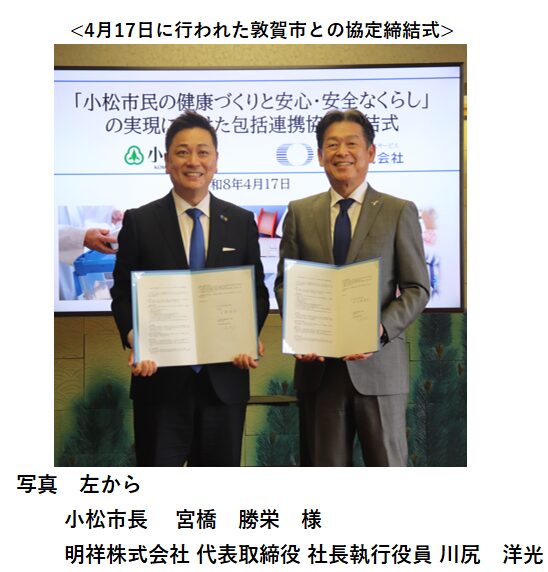 小松市と「市民の健康づくりと安心・安全なくらし」の実現に関する包括連携協定を締結いたしました。