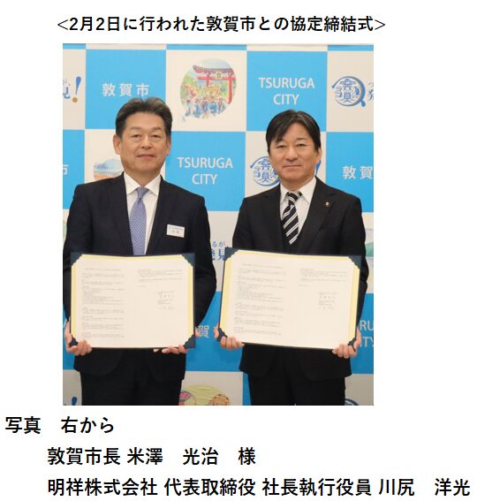 敦賀市と「敦賀市民の健康づくりと安心・安全なくらし」の実現に向けた包括連携協定を締結いたしました。